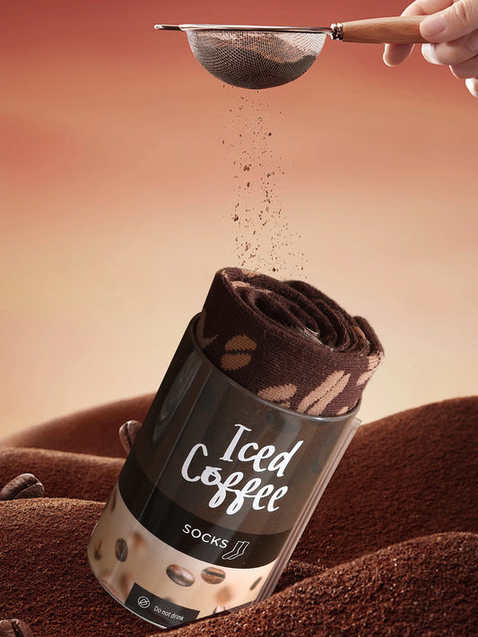 1 pair of mid-calf socks for men and women, featuring a novelty coffee can design, practical and suitable for holiday gifting.