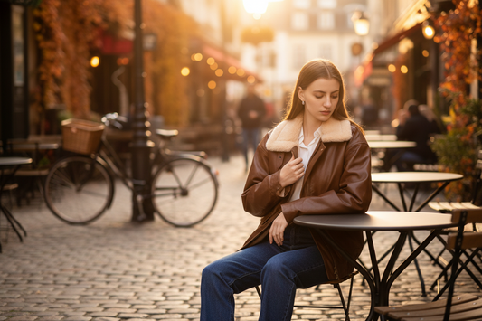 Oversized Bruin Faux-Leren Bomberjack met Fleece Kraag