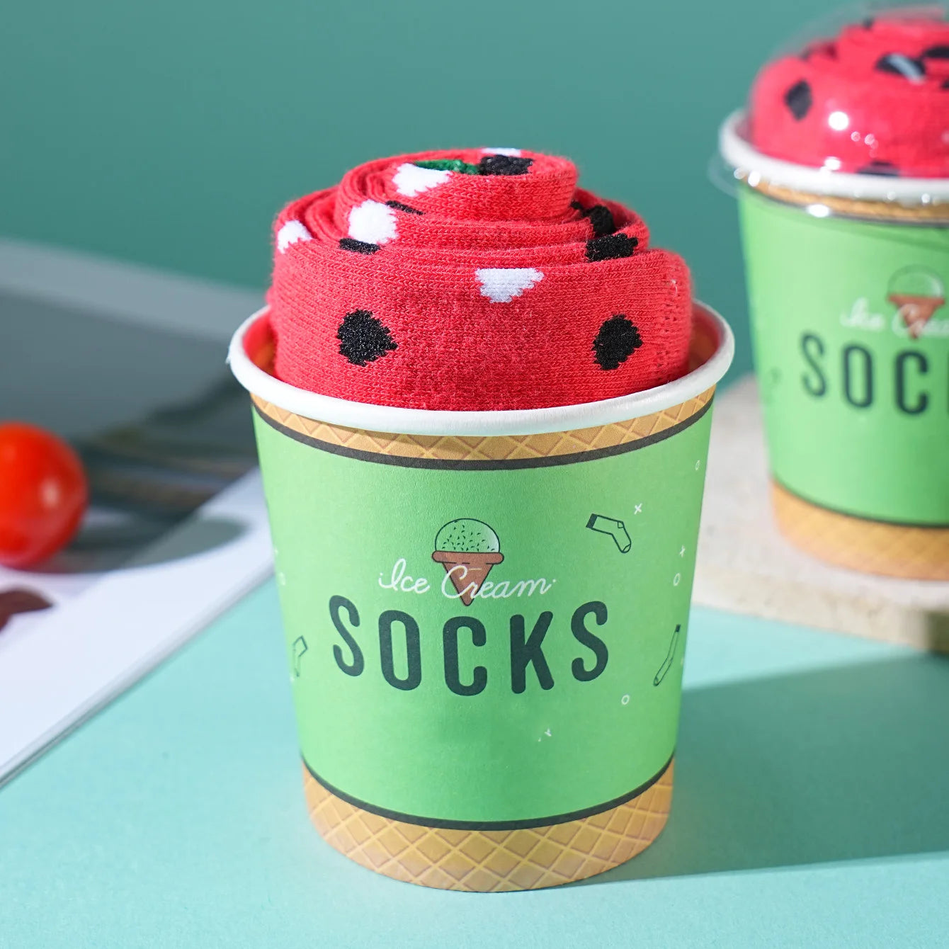 1 paar halfhoge sokken voor mannen en vrouwen, nieuwigheid en leuk, kleurrijke groene cup ijs geschenkdoos sokken, Europese en Amerikaanse modetrendstijl, comfortabel en ademend, feest casual nieuwigheidscadeau, Valentijnsdag, Kerstmis, kerstman, herfst-