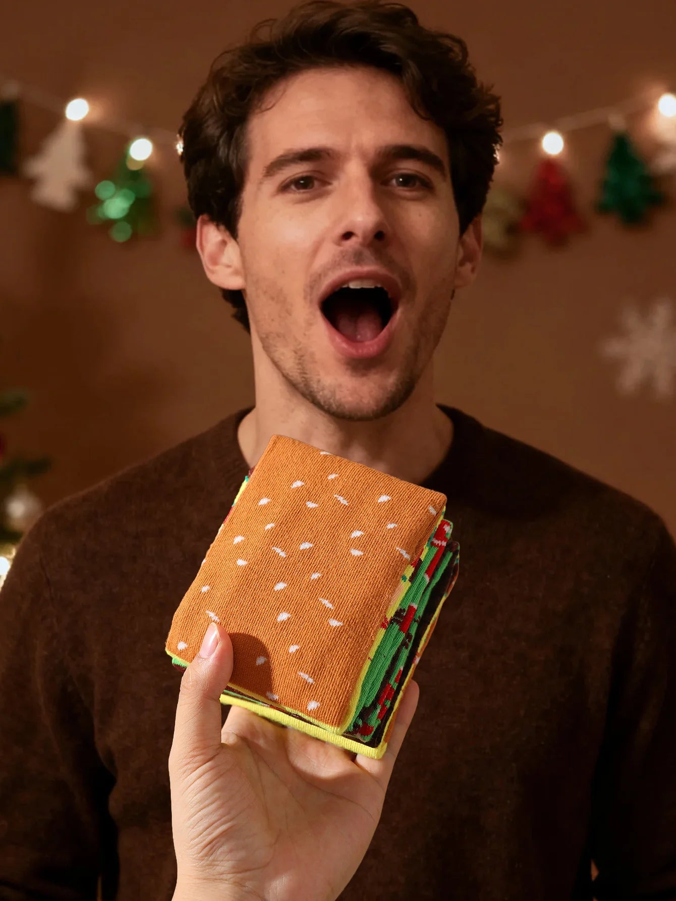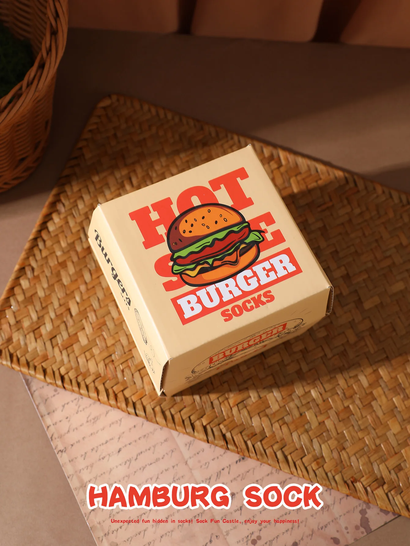 2-paar dezelfde heren- en damessokken met een uniek, creatief en interessant hamburgerontwerp als vakantiecadeau