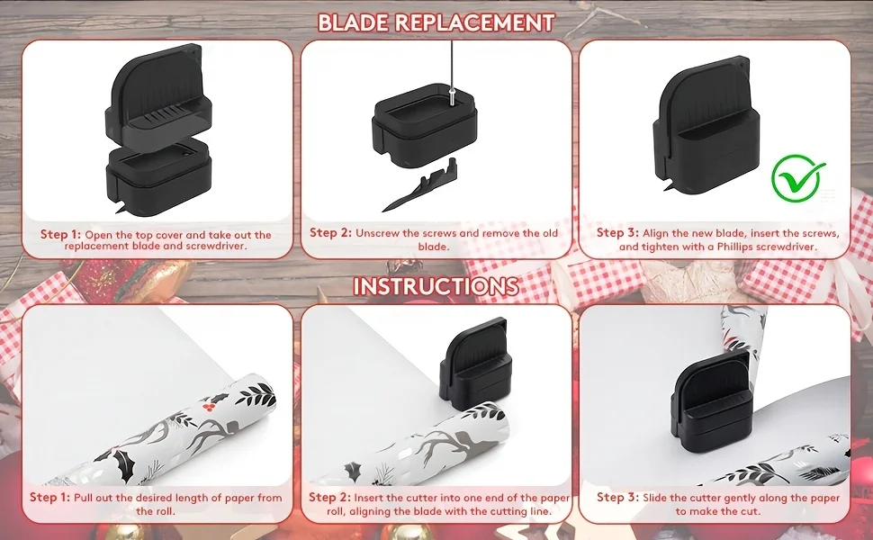 Coupe-papier cylindrique, 1 pièce, coupe-papier d'emballage de papier pour cadeau de noël, travailleur de coupe