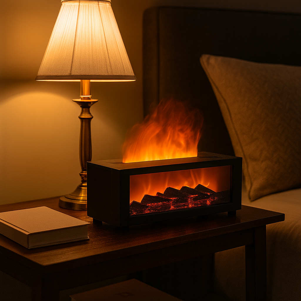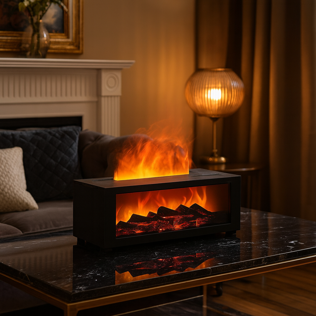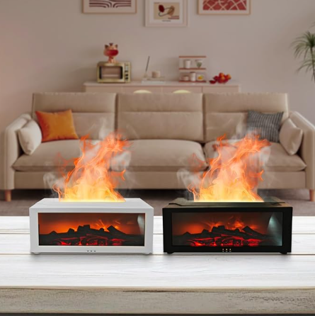 Breng sfeer en rust in huis met deze mooie luchtbevochtiger die eruitziet als een kleine haard. De combinatie van zachte vlamverlichting en fijne nevel zorgt voor een warm en gezellig gevoel in elke kamer.