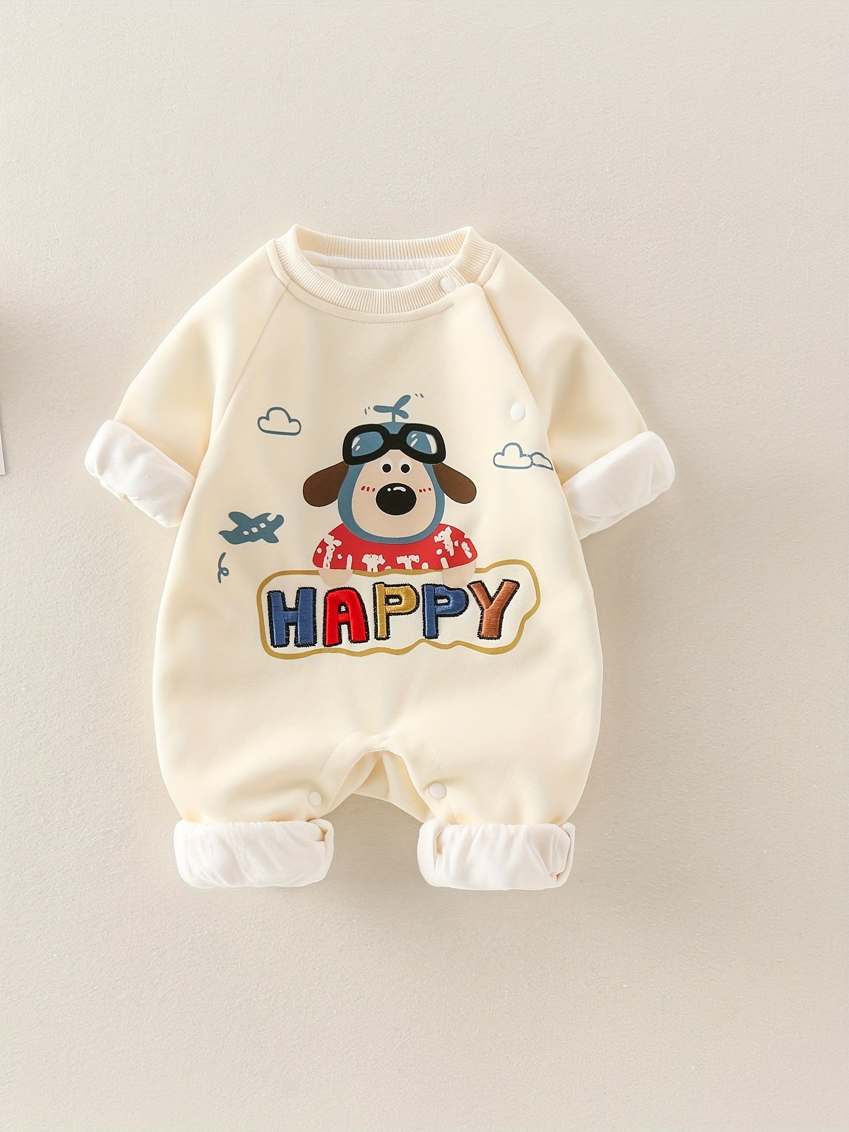 MCDULL SISTER Baby Girl'S Autumn Double-Layer Outfit - Cute Cartoon Bear & Airplane Design, Warm Long Sleeve Romper with Pockets, Loose Fit Spring/Fall Clothing, Soft Fabric, Perfect for Outdoor Play, Baby Girl Clothes, Perfect for Outdoor, J