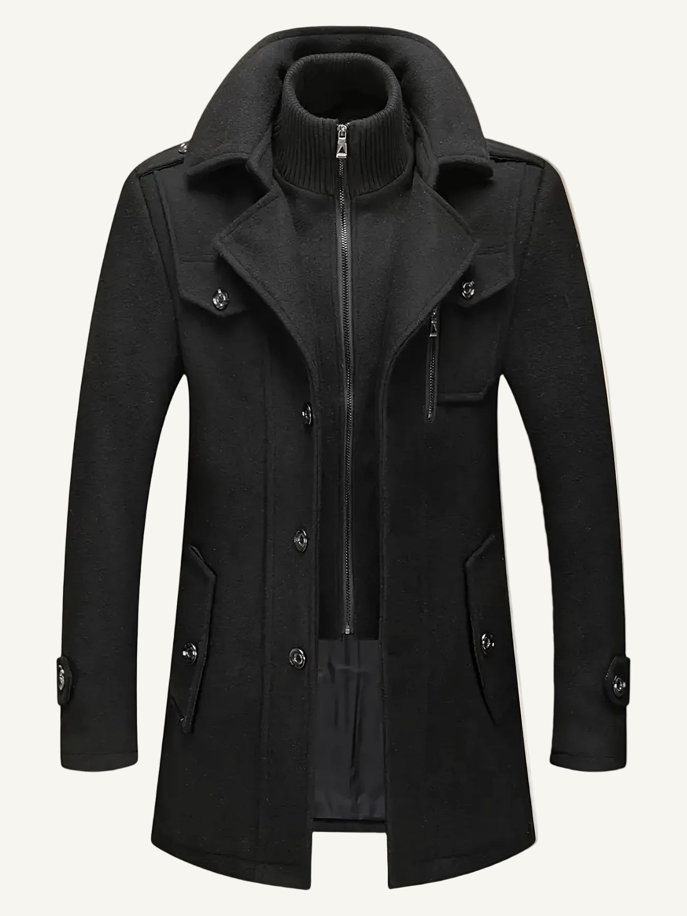 Upgrade je wintergarderobe met deze herenmantel, ontworpen voor comfort, warmte en een volwassen stijl die nooit uit de mode raakt. De geïntegreerde afneembare ritssjaal geeft je twee looks in één: extra warm op koude dagen, clean & classy wanneer je het simpel wilt houden.